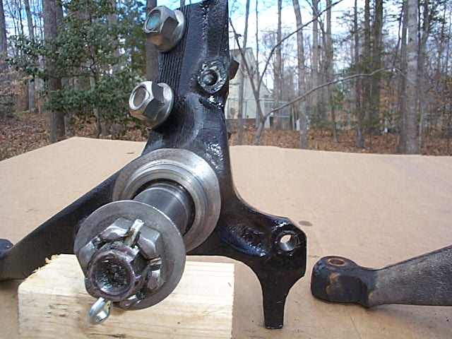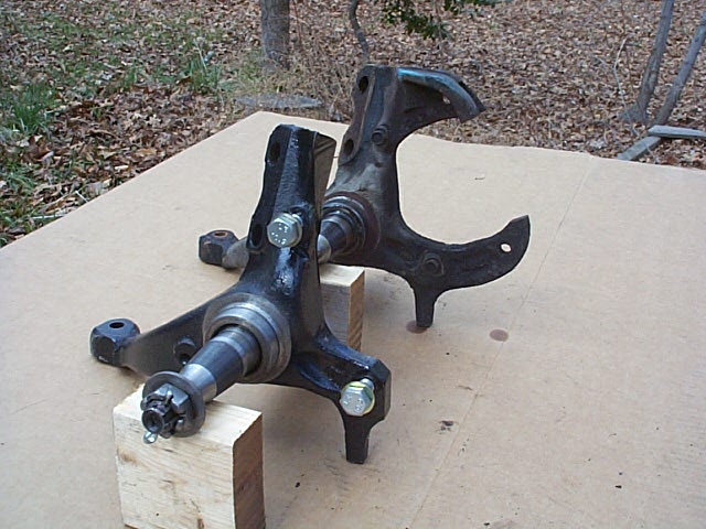 As you can see there is quite a difference between the 2 spindles. The one in the back is the stock non 1LE spindle. The front spindle has had the ears lopped off and the two bolts holes needed to be enlarged for the much larger bolts on the right.